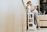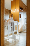 Bokštelio aukštis lengvai reguliuojamas, kad augtų kartu su Jūsų vaiku. Todėl galima naudoti kaip laiptelį norint ką nors pasiekti, padėti mamai ruošti valgį virtuvėje ar savarankiškai nusiplauti rankas vonioje.
