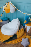 Minkšti ir švelnūs triušiuko formos aksominiai sėdmaišiai taps prabangiu ir funkcionaliu aksesuaru Jūsų mažylio kambaryje! Jaukūs ir patogūs sėdmaišiai patiks bet kuriam vaikui. Wigiwama sėdmaišiai yra pagaminti iš STANDARD 100 iš OEKO-TEX® aksomo (90% medvilnės) ir prisideda prie saugumo reikalavimų vaikams atitikimo. Turi lengvai užtrauktuku nusegamus užvalkalus, kuriuos galima skalbti ir yra užpildyti sertifikuotomis, netoksiškomis polistirolo granulėmis. EPS granulės yra tinkamos daugkartiniam naudojimui ir perdirbimui.
